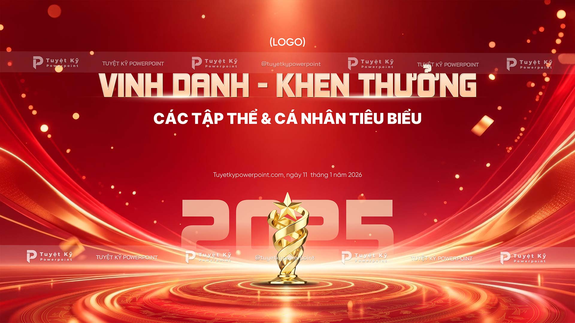 Tông đỏ – vàng sang trọng, chuẩn nhận diện cho sự kiện vinh danh.