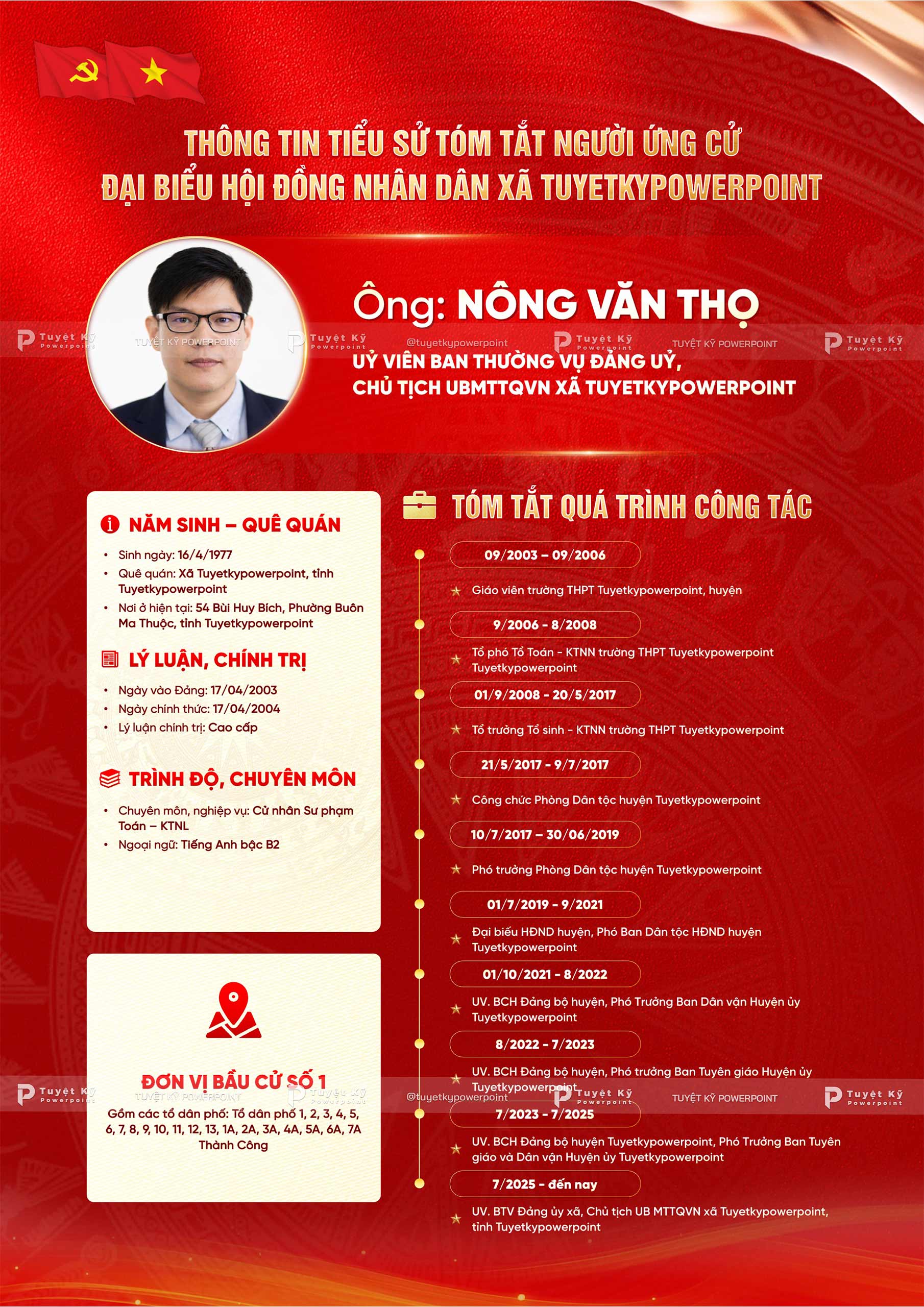 Mẫu Poster/Social Post Tiểu Sử Tóm Tắt Ứng Cử Viên Đại Biểu Hội Đồng Nhân Dân
