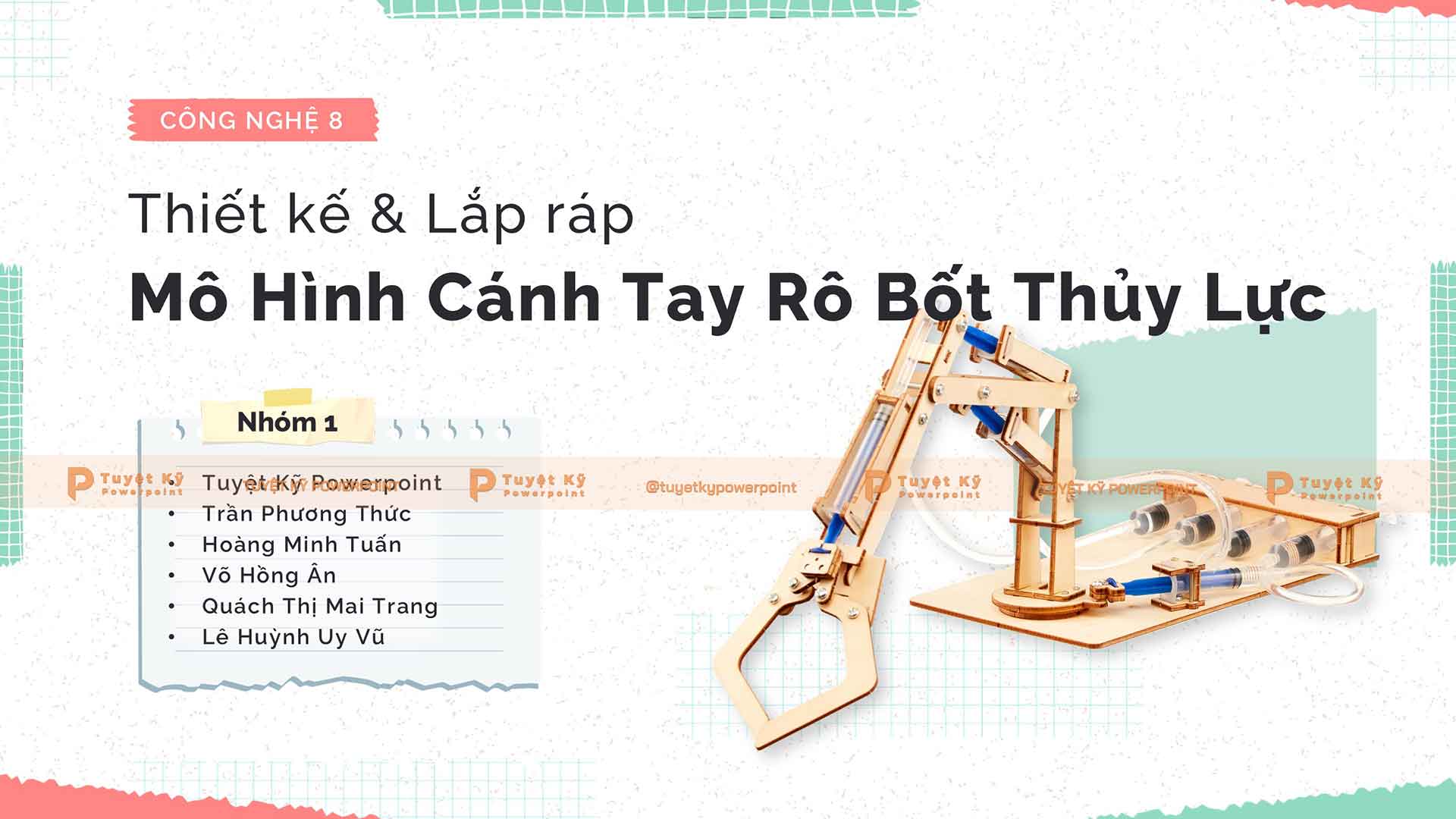 Hãy thử ngay mẫu Powerpoint “Công nghệ: Thiết kế & Lắp ráp Mô Hình Cánh Tay Rô Bốt Thủy Lực” của Tuyệt Kỹ Powerpoint và tạo nên một bài thuyết trình ấn tượng về công nghệ thủy lực và cơ khí!