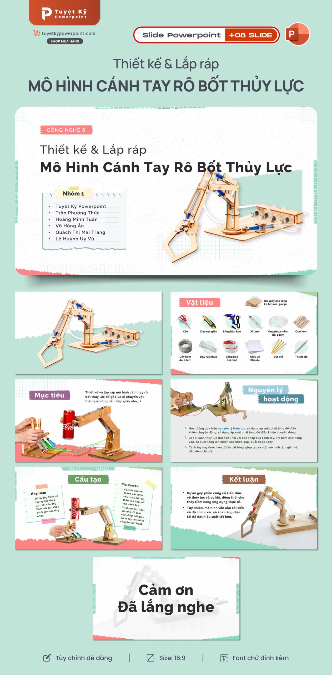 Sản phẩm Slide “Thiết kế và Lắp ráp Mô hình Cánh tay rô bốt thủy lực” tại Tuyệt Kỹ Powerpoint