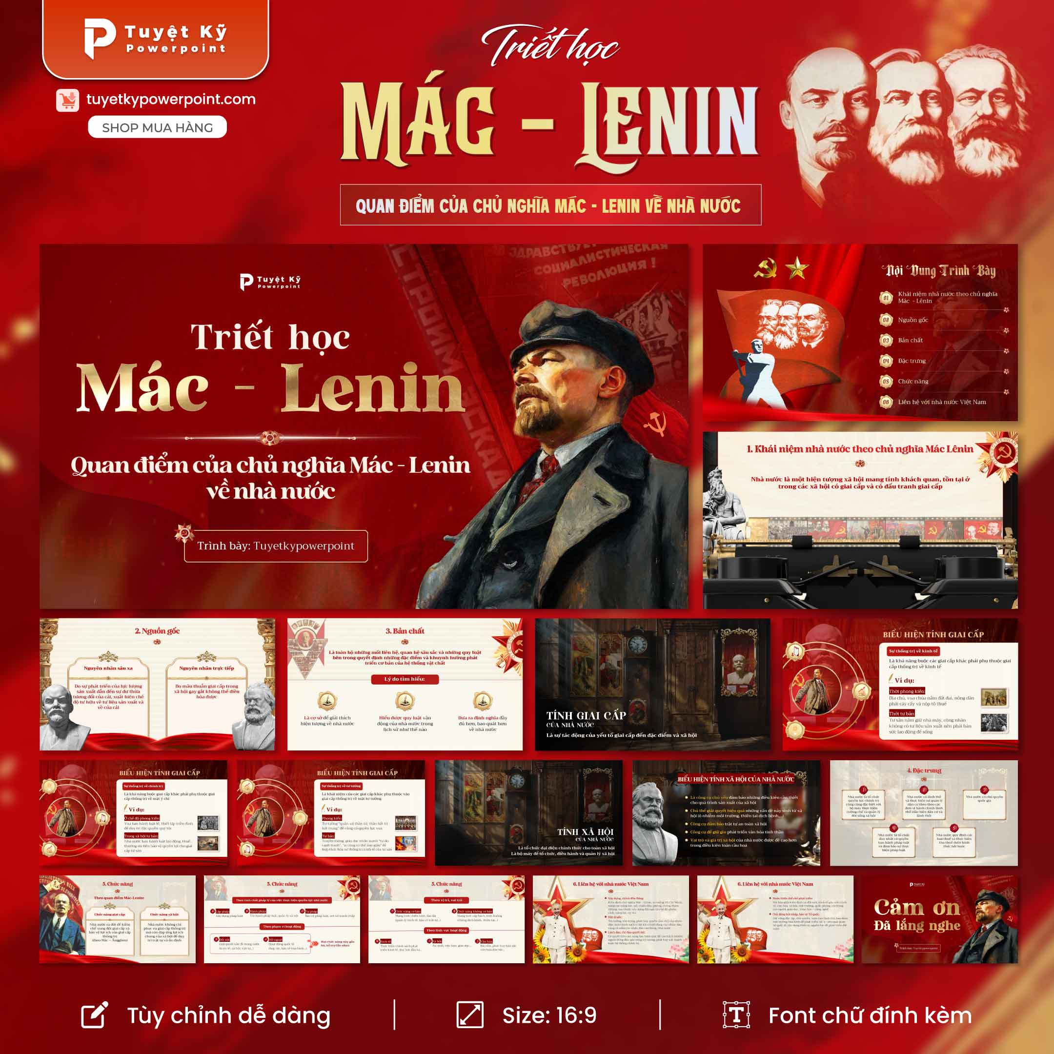Mẫu Slide Triết học Mác – Lênin: Quan điểm về Nhà nước được thiết kế chuyên nghiệp, thể hiện đầy đủ tinh thần học thuật và chính trị của môn học. Với màu đỏ chủ đạo tượng trưng cho cách mạng và công bằng xã hội, bộ slide phù hợp cho giảng viên, sinh viên, hoặc các buổi thuyết trình môn Triết học, Chính trị học tại các trường đại học, cao đẳng và trung cấp.